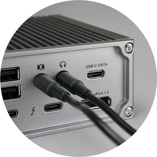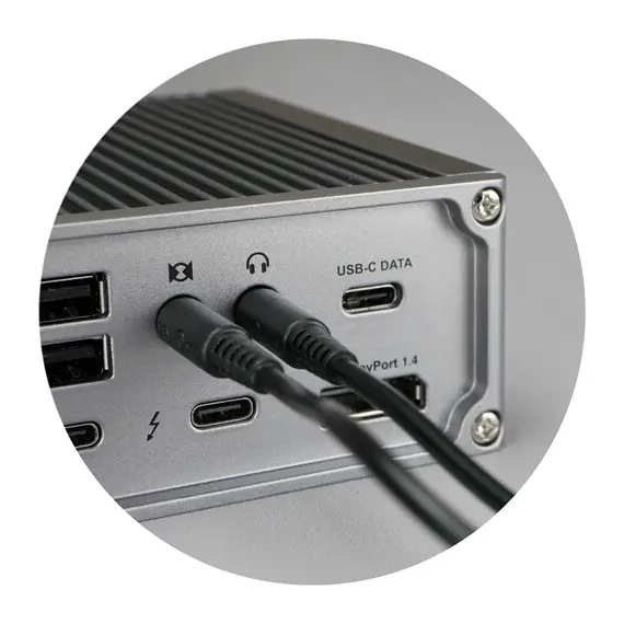 שלושה חיבורי שמע - יציאה קדמית לאוזניות, יציאה אחורית לאודיו, וכניסת מיקרופון - מספקים גמישות מלאה בניהול סאונד.