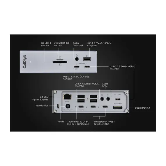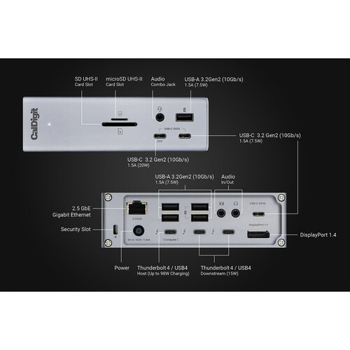תחנת העגינה האייקונית מבית CalDigit חוזרת בדור הרביעי שלה, ומביאה את הביצועים החזקים ביותר לצד מספר החיבורים הרב ביותר, טעינה מהירה והיכולת לתמוך בדור ה-Thunderbolt 4.