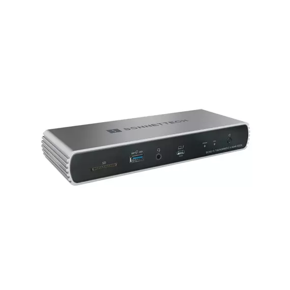 תחנת עגינה Thunderbolt 4 אוניברסלית עם שלושה יציאות Thunderbolt 4, יציאת HDMI אחת, Ethernet 2.5Gb, ותמיכה בתצוגת 8K