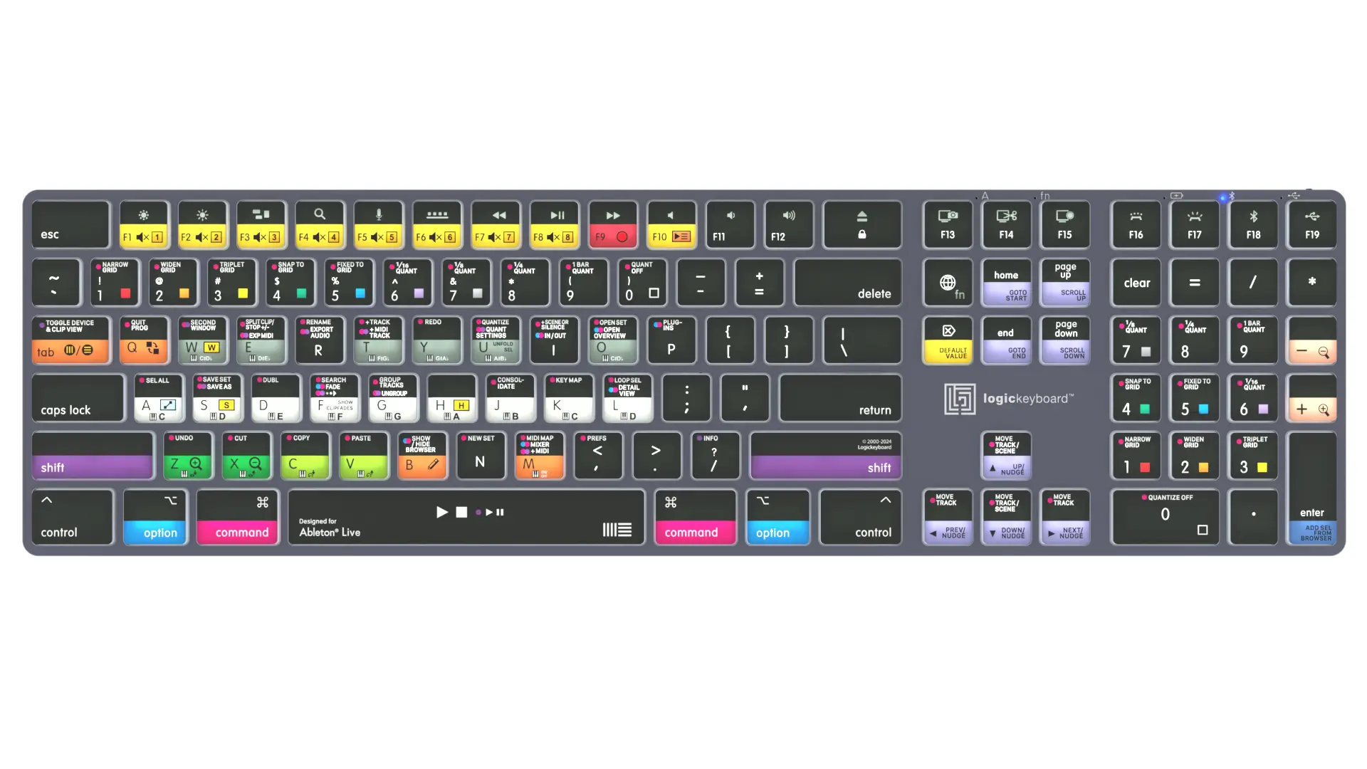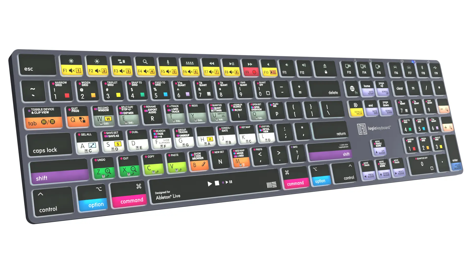 מקלדת זו היא הבחירה המושלמת לעבודה עם Ableton Live. מקשי הקיצור עם סימונים ברורים וצבעוניים מאפשרים שליטה מהירה ומדויקת בתוכנה. היא אידיאלית עבור מפיקים מוזיקליים, עורכי סאונד וכל מי שעובד ברצינות עם Ableton Live.