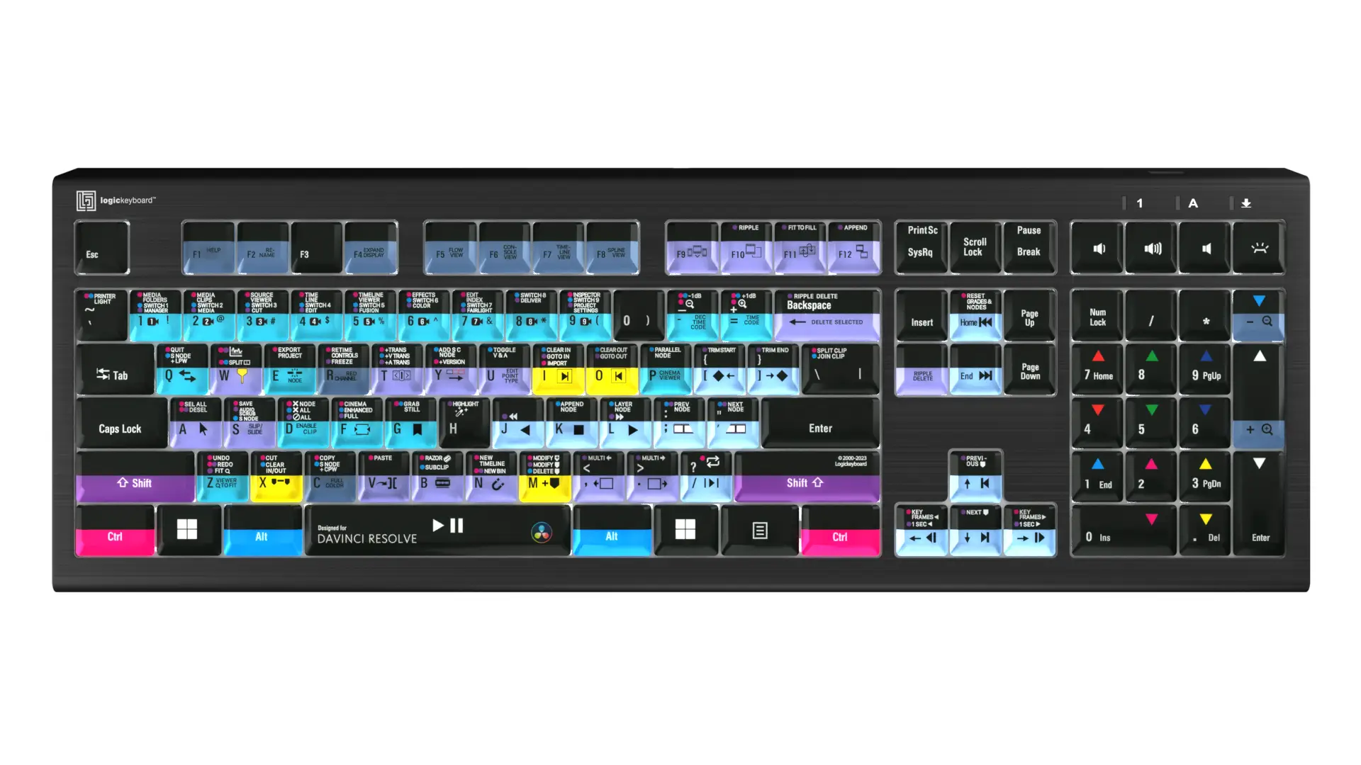 מקלדת Logickeyboard תוכננה במיוחד לעריכת וידאו ב-DaVinci Resolve עבור מחשבי Windows. הקיצורים המודפסים על המקשים והקוד הצבעוני שלהם מאפשרים שליטה מהירה ואינטואיטיבית בתוכנה. המקלדת מתאימה לאולפני פוסט-פרודקשן, בתי עריכה מקצועיים ולכל מי שעובד ב-DaVinci Resolve.