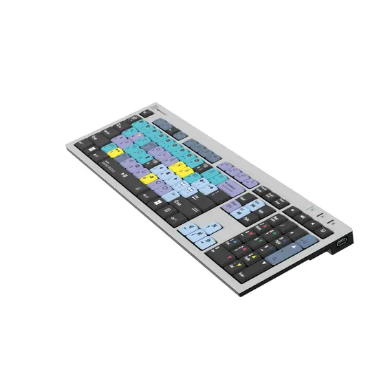 מקלדת Logickeyboard דקה ומיועדת לעריכת DaVinci Resolve במחשבי Windows. הקיצורים המודפסים על המקשים והקוד הצבעוני שלהם מאפשרים שליטה מקצועית ומהירה בתוכנה. המקלדת מתאימה לאולפני פוסט-פרודקשן, בתי עריכה מקצועיים ולכל מי שעובד ב-DaVinci Resolve.