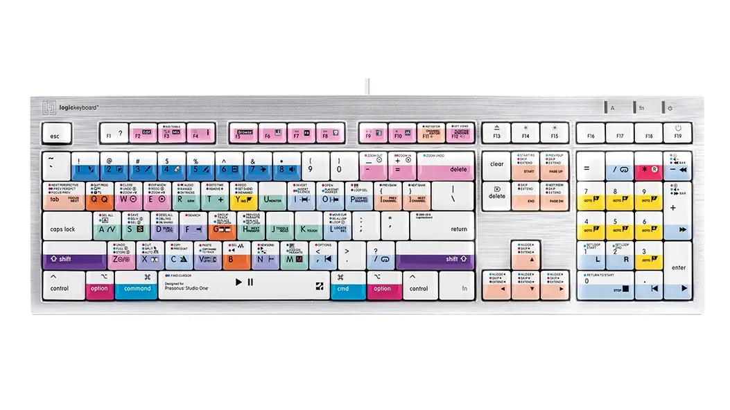 המקלדת הזו היא הבחירה המושלמת לעריכה בתוכנת Studio One ב‑Mac. קיצורי הדרך המודפסים על המקשים עם סימון צבעוני ברור מאפשרים שליטה מהירה ומקצועית ב‑Studio One. פתרון אידיאלי למפיקים מוזיקליים, עורכי סאונד ולכל מי שעובד בצורה מקצועית עם התוכנה.