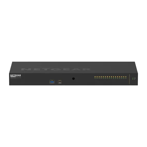 המתג המנוהל AV Line M4250 XSM4216F עם 16 פורטים Gigabit SFP+ מבית Netgear מיועד ל-1G AV על גבי IP. כולל 16 פורטי סיב אחוריים SFP+ להבטחת אינטגרציה נקייה במדפי AV וקונפיגורציה מוקדמת לשימוש מידי מהקופסה.